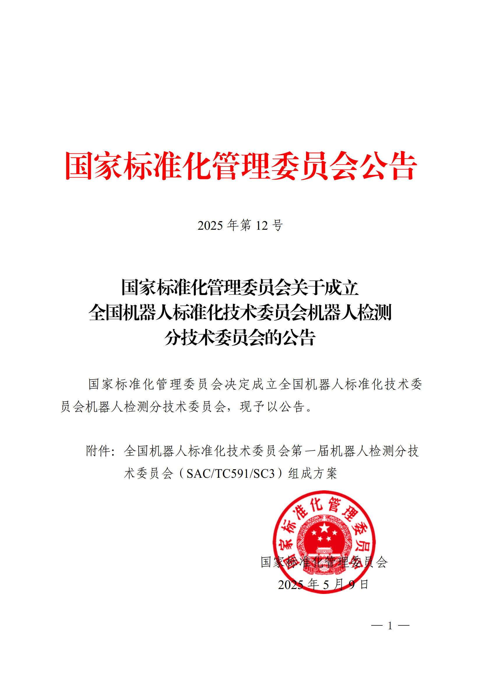 5月9日,国家标准化管理委员会发布《关于成立全国机器人标准化技术委员会机器人检测分技术委员会的公告》,决定成立全国机器人标准化技术委员会机器人检测分技术委员会(以下简称:分技术委员会),主要负责全国机器人检测与评估领域标准化工作,秘书处由上海电器科学米兰·(milan)中国承担,我院专家邢琳任委员兼秘书长。