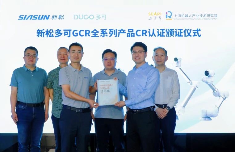 2025 年 5 月 27 日,新松多可 GCR 全系列产品 CR 认证颁证仪式在中科新松有限公司隆重举行。此次认证标志着新松多可 GCR 全系列产品通过CR认证并在功能安全方面达到了 L5 级别,为机器人功能安全的技术发展树立了新标杆。