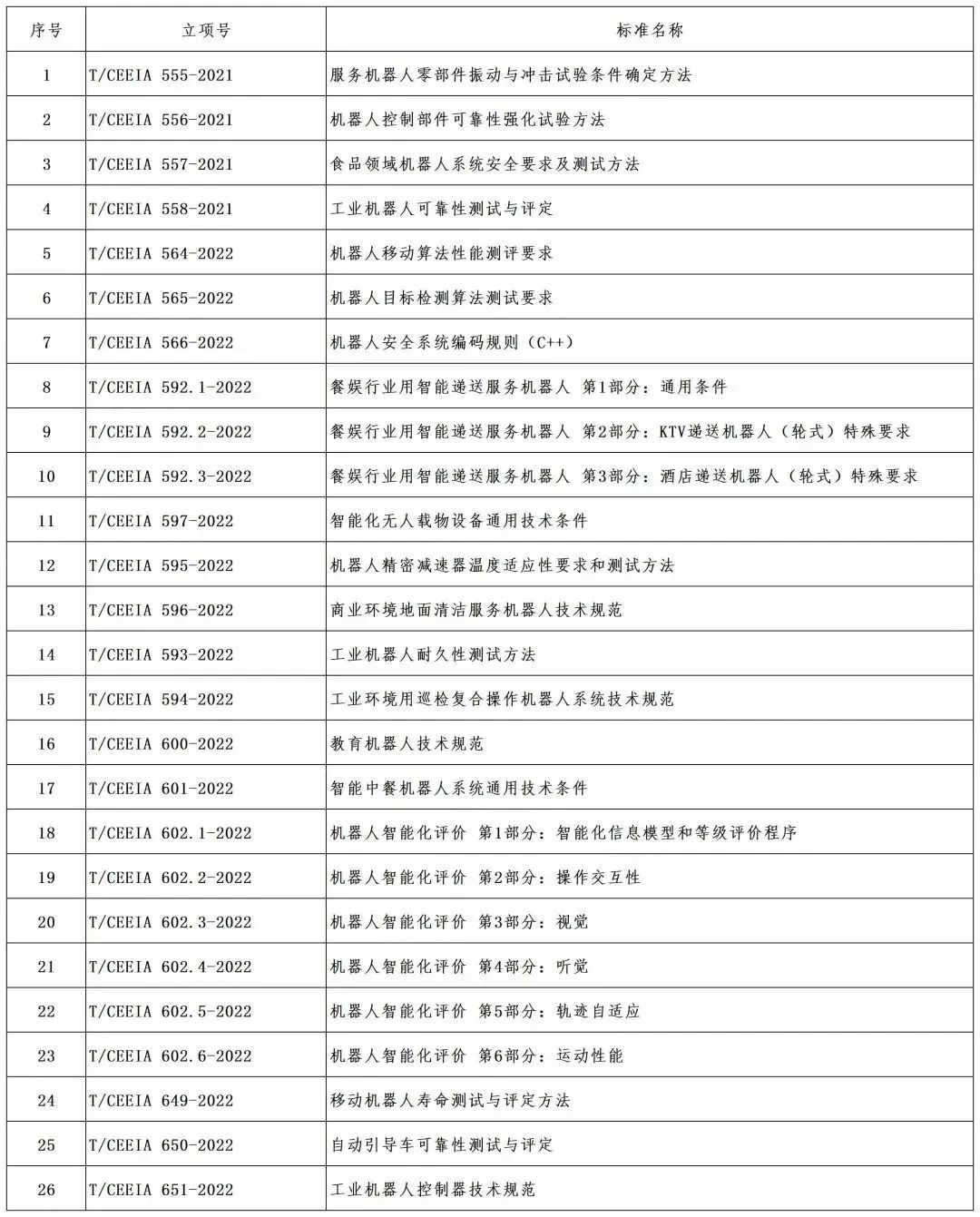为了推进机器人领域应用标准的完善,促进该领域团体标准化工作的开展,现中电协电气场所用机器人安全与检测标准化专业委员会(以下简称:中电协机器人专委会 )征集2023年第三批团体标准制定计划项目,现将有关事项通知如下: